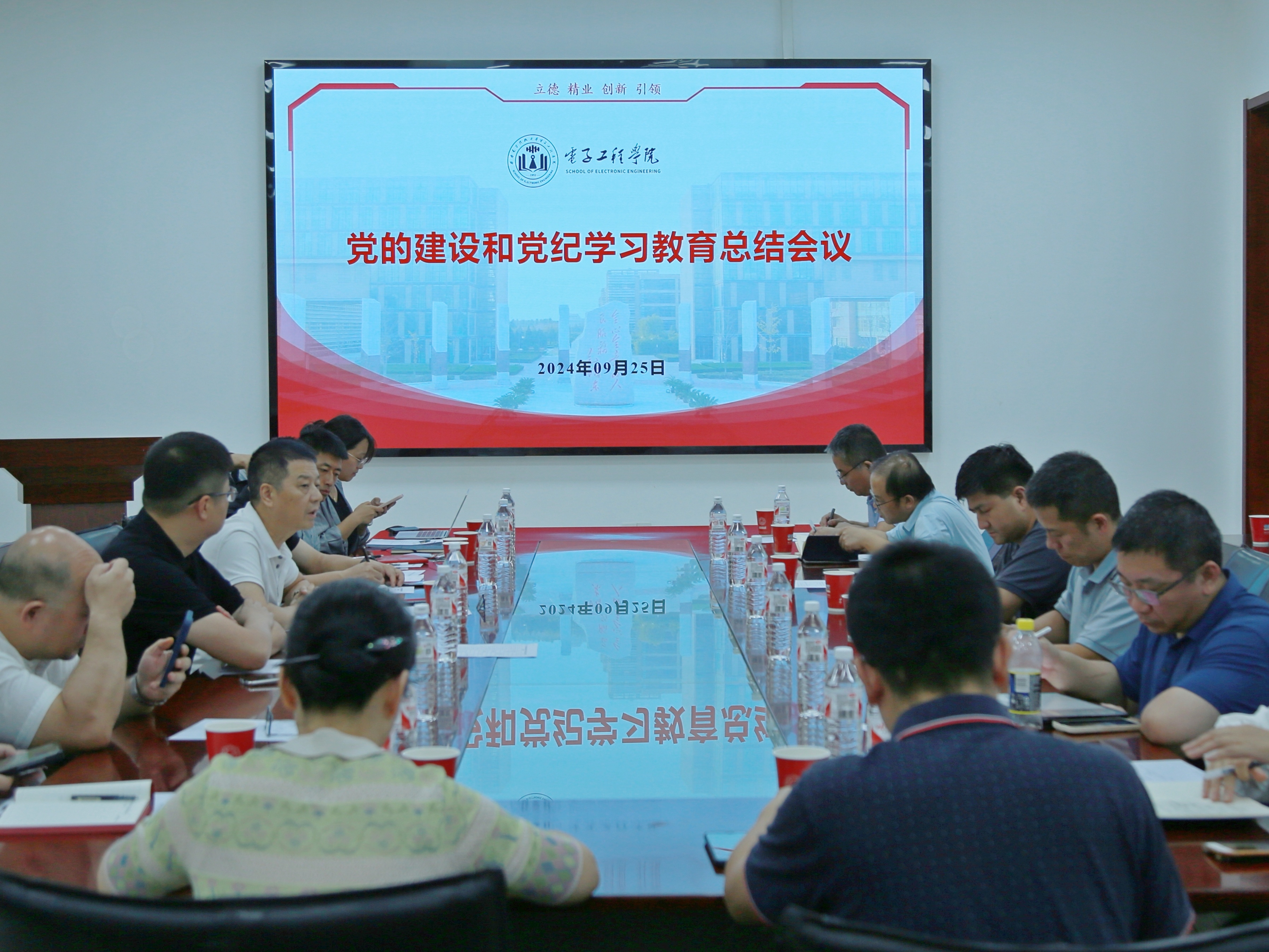 (通訊員王潔 劉昕雨)9月25日下午,電子工程學院黨的建設和全面從嚴治黨工作會議召開。會議傳達學習習近平總書記近期重要講話重要指示精神和中央黨的建設工作領導小組會議精神,總結學院黨紀學習教育情況,部署本學期學院黨的建設和推進黨紀學習教育常態化長效化工作。正處級組織員曹輝傳達學校有關黨建工作安排,黨委副書記、紀委書記賀振航總結匯報學院黨紀學習教育開展情況,天線所黨支部書記劉英介紹全國黨建“樣板支部”建設的有關思考和工作進展情況。