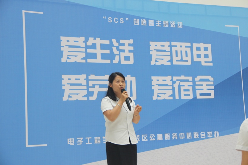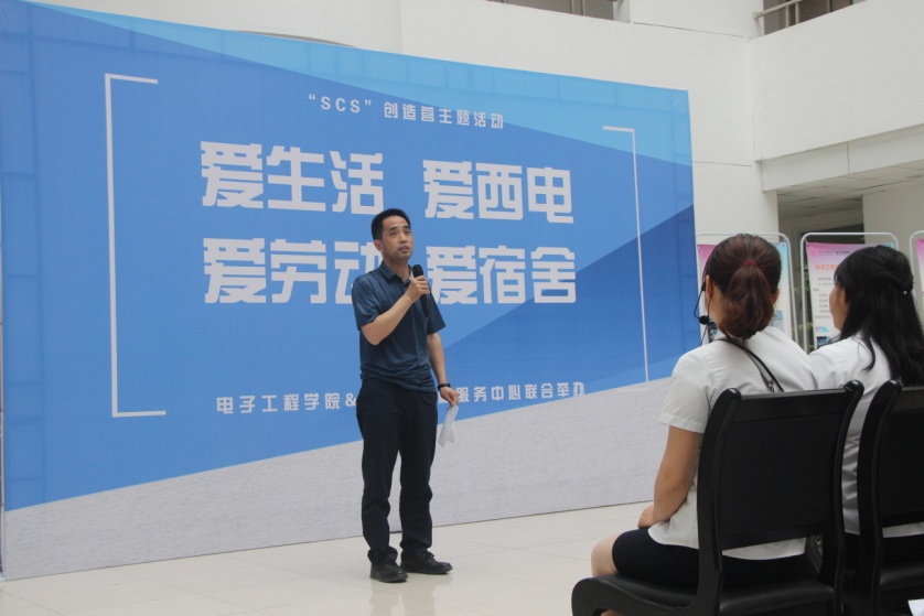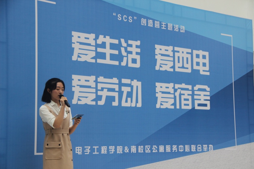 SCS創造營主題活動,其內涵主要為:第一個S是電子工程學院的英文縮寫,同時也是See的縮寫,C是Clean的縮寫,第二個S是Safety的縮寫,旨在希望電子工程學院的同學們能夠創造整潔安全的宿舍環境,同時作為先鋒力量,發揮領航作用,進而激勵所有同學們在接下來的大學生活中能夠從自身努力開始,在體驗勞動中創造、看到并擁有一個干凈的、安全的宿舍環境,在掃一屋掃天下為前行目標的同時,使學生公寓能夠成為西安電子科技大學的靚麗風景線。]