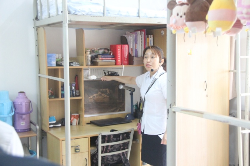 1602061班學生張昕雨:進入每個內務整理體驗的宿舍,第一感覺是干凈舒適。聽宿管老師細心地講解宿舍整理和宿舍安全問題,尤其是平時注意不到的細節問題,比如空調和風扇需要定期清理,公共區域尤其是衛生間,更要注意保持衛生,離開宿舍之后注意及時斷電等。通過這次活動體驗,我認為我們要正確認識到營造良好的生活環境的重要性,弘揚勞動精神,做德智體美勞全面發展的西電人。