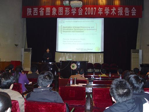 2007年11月23日下午,陜西省圖象圖形學學會2007年學術報告會在我校科技樓一樓報告廳舉行。來自西安市各大高校的近200名圖象圖形學界的學人參加了本次學術報告會。學術報告會由陜西省圖象圖形學學會副理事長、我校電子工程學院高新波教授主持.