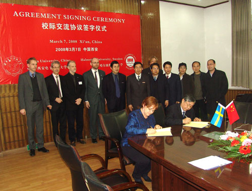 2008年3月6日至9日瑞典哈爾姆斯塔德大學(Halmstad University)Marita Hilliges副校長率6人代表團訪問我校。