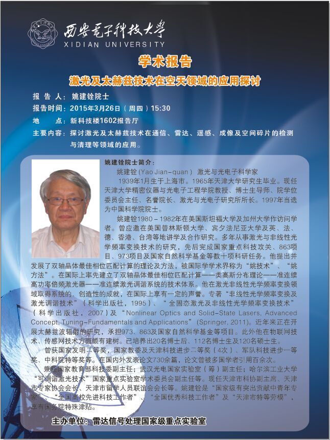 報告題目: 激光及太赫茲技術在空天領域的應用探討