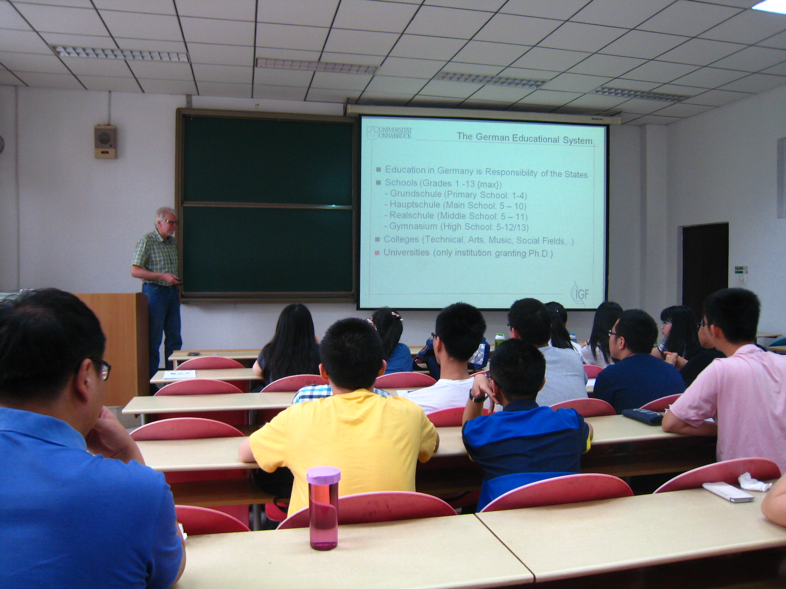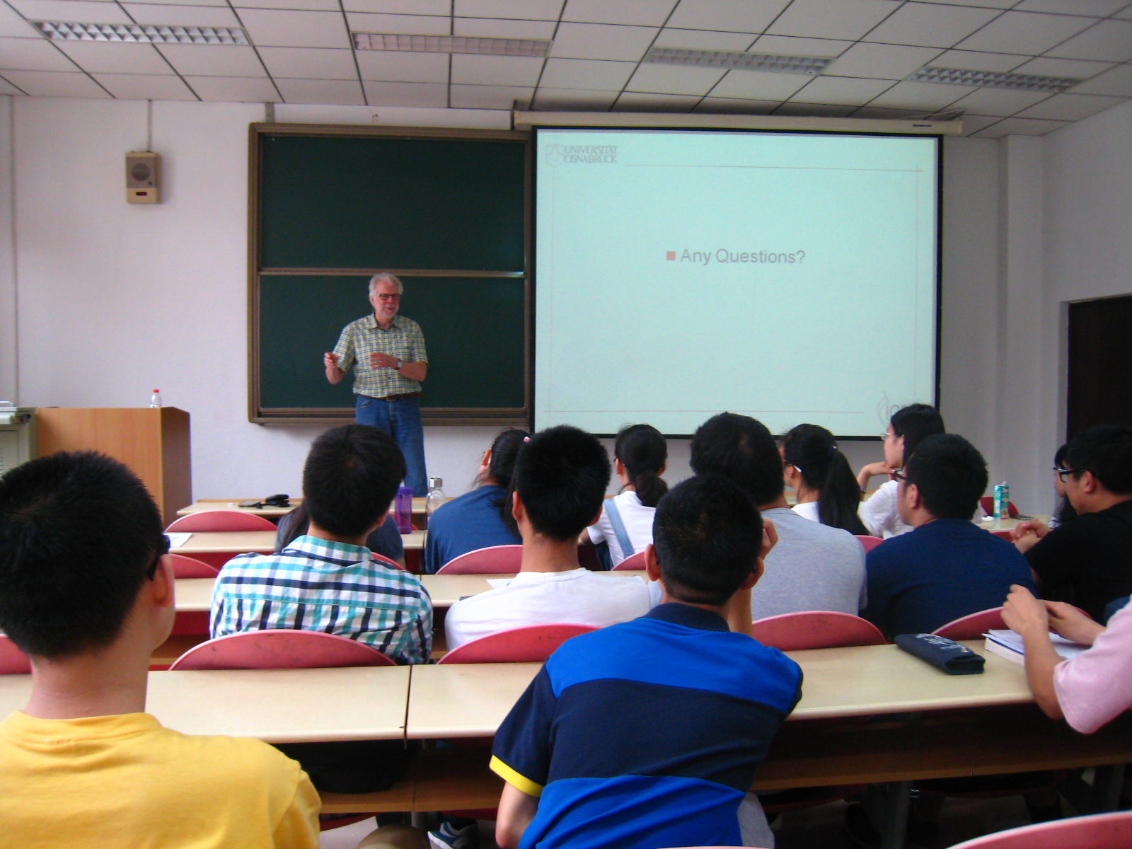 6月28日,Manfred Ehlers教授赴我校南校區,與電子工程學院的本科生進行了交流。Manfred Ehlers教授介紹了德國高等教育的情況,以及Osnabrueck大學遙感專業的課程設置、學時數、學分數、開設學期等情況,并回答了同學們關于出國留學的許多問題。