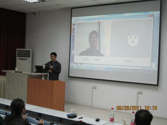 9月29日上午,在電子工程學院報告廳劉教授首先做了題為“What can we read from face images”的學術報告。劉教授首先簡要介紹了他所從事學術領域的研究現狀及發展前景,給出了他所帶領的課題組在人臉表情識別、人臉配準、人臉畫像識別、醫療圖像分析、視頻事件的檢測與分析等方面的研究進展與成果。