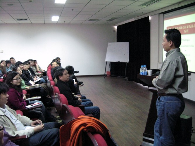 應電子工程學院廖桂生教授的邀請,美國舊金山州立大學李世東教授于2010年3月18日-19日來我校講學訪問。來訪期間,李世東教授為全校師生作了題為“框架、偽框架,融合框架及其在信號和圖像處理中的應用報告”,并且介紹了他所從事的學術研究以及該領域的發展前景。在會后的座談會上,雙方還就講學內容中所涉及的有關技術細節進行了深入探討,另外雙方還就今后進一步加強合作、開展更多的學術交流等問題進行了磋商。