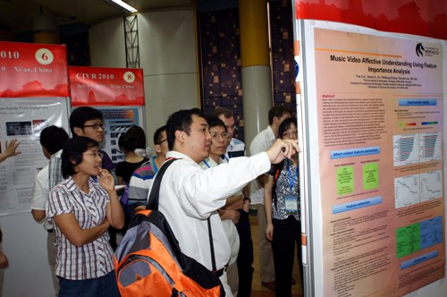我校電子工程學院高新波教授擔任了此次CIVR 2010國際會議的聯合主席。大會共收到了來自世界各地的153篇論文投稿,經過程序委員會專家的嚴格評審,共有53篇論文被錄用,其中有16篇論文被錄用做口頭報告,另有37篇論文被錄用做海報展示。