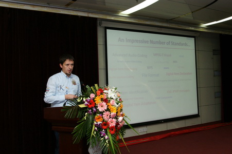 MPEG & JPEG會議是多媒體領域內的國際盛會,會后舉辦“多媒體技術發展與數字音、視頻標準化技術國際學術研討會”是每屆MPEG & JPEG會議的慣例。旨在總結、報告、宣傳和交流MPEG & JPEG會議期間涌現的多媒體新技術的應用和新標準。本次研討會組委會由美國南加利福尼亞大學(University of Southern California)的王新教授、JPEG主席Daniel Lee教授、瑞士聯邦工業大學教授,EMITALL Surveillance SA創始人IEEE Fellow Touradj Emrahimi博士、美國MERL實驗室IEEE fellow Huifang Sun博士以及MPEG中國主席北京大學IEEE Fellow高文教授等組成。特邀報告人包括來自美國南加利福尼亞大學(University of Southern California)的王新教授、北京大學的MPEG中國主席高文教授、德國Heinrich-Hertz-Institute (HHI) Berlin 的 Karsten Müller博士、浙江大學的虞露教授、韓國Samsung公司的Song Jaeyeon 博士、韓國漢陽大學的Euee S. Jang教授、美國華為電子的Minjie Xie博士、AHG 主席YoungKwon Lim博士、歐洲三菱電子的總經理Miroslaw Bober博士、韓國Kyung Hee大學KyuHeon Kim教授、ETRI高級工程師Sanghyun Joo和奧地利Klagenfurt大學的Christian Timmerer教授。各位專家發表的學術報告題目如下: