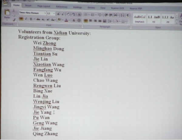 第90屆MPEG和第50屆JPEG國際標準會議于2009年10月24日至30日在西安喜來登大酒店舉行。此次“MPEG/JPEG國際標準會議”由我校電子工程學院負責承辦。本次會議經過電子工程學院航天電子信息研究所、國際合作與交流處、電子工程學院網絡信息中心將近一年的籌備。會議網站系統由電子工程學院網絡信息中心提供支持。同時,從全校近200名報名者中,挑選出50多名志愿者參與了會議現場的服務工作。志愿者全部是在校研究生,他們主要為會議提供了語言翻譯、場地引導、設備維護、網絡支持等等多種服務,受到MPEG和JPEG國際組織及參會專家的高度評價。下面照片展示了此次會議上志愿者的風采,以此紀念12月5日國際志愿者日。會議詳情見http://www.bjpacx.com/news/newsshow.asp?id=3259