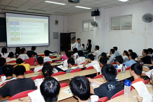 此外,代表團一行還在我校南校區做了日本政府亞洲人才獎學金和友好院校獎學金留學項目說明會。共有100多名大三和大四本科生參加了說明會,會后,代表團一行對學生們感興趣的問題做了詳細的解答。金澤大學目前正在實施日本經濟產業省、文部科學省的高層次專業留學生培養計劃。該計劃主要招收來自亞洲各國(以中國為主)的優秀外國留學生,培養成為高層次專業技術人才,以期將來在機械工學,IT技術,制藥化工等領域能活躍于日資的企業。