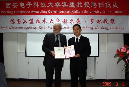 應我校雷達信號處理國家重點實驗室的邀請,德國漢堡技術大學副校長赫爾曼﹒羅林(Hermann Rohling)教授于2009年3月5日-11日來我校進行了學術交流和訪問,并受聘擔任我校客座教授。