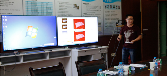然后,會議上研究生王露對技術方案做了介紹, 并6名碩博士生在實驗設備上展示了最近研究成果。