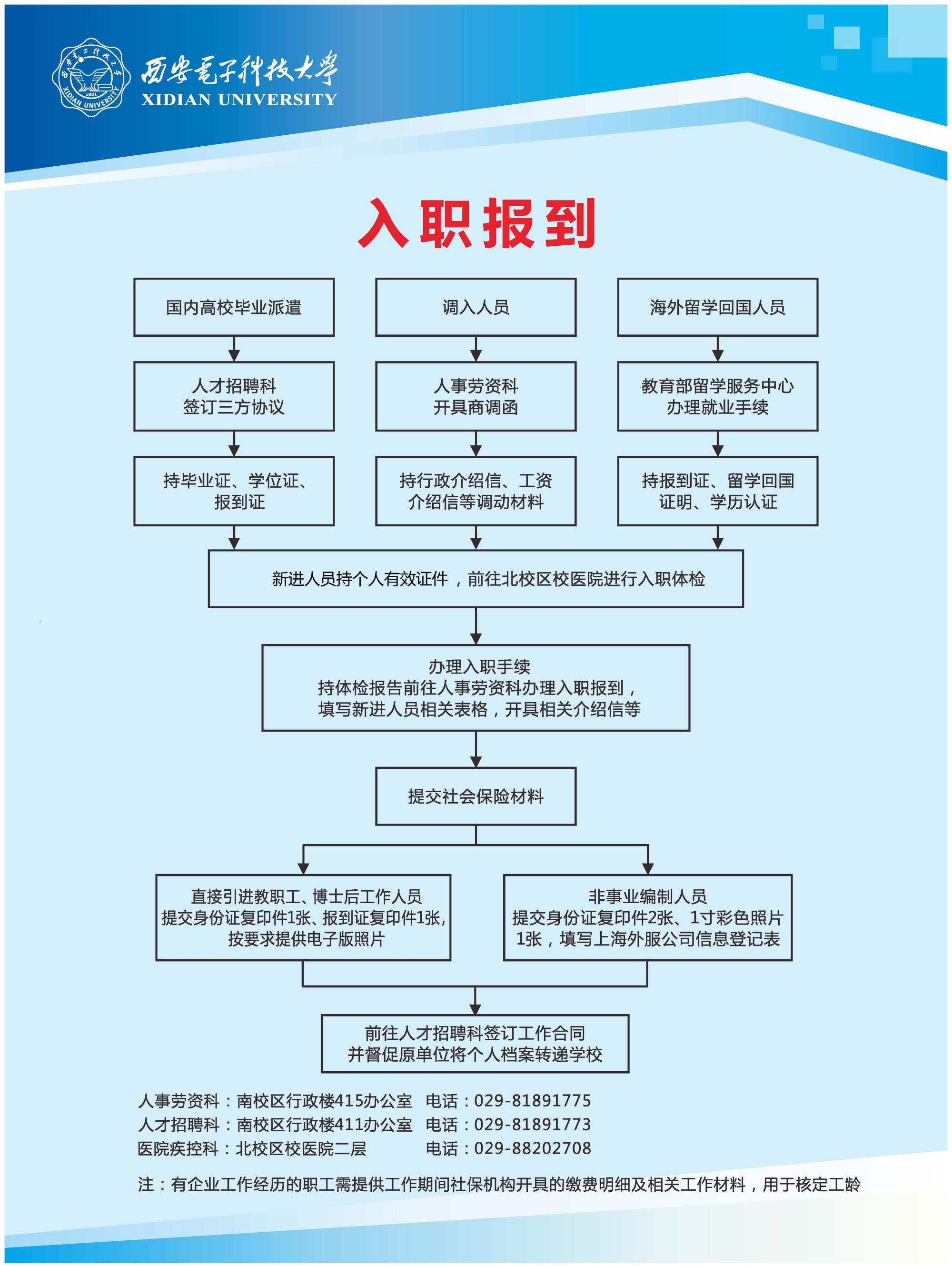 新來人員報到流程 2020-11-16 15:28:40 瀏覽次數: 歡迎加入西安電子科技大學電子工程學院! 新進教職工注冊報到平臺:http://rsxj.xidian.edu.cn 新進教職工學校、學院注冊報到指南,請下載 新來人員表格填寫模板